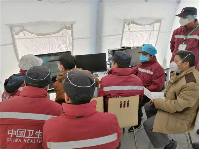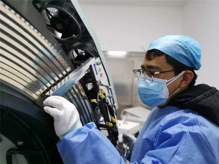 ▲明峰醫(yī)療工程師在武漢中醫(yī)醫(yī)院安裝設(shè)備
