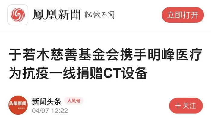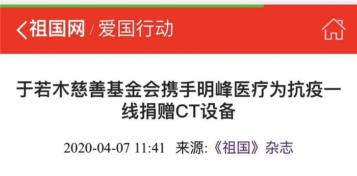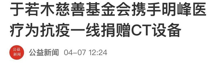 疫情爆發(fā)后,明峰醫(yī)療時(shí)刻關(guān)注疫情發(fā)展,并向奮戰(zhàn)在抗擊新型冠狀病毒前線的所有醫(yī)護(hù)人員、志愿者致以最崇高的敬意,攜手北京市于若木慈善基金會(huì)和基金會(huì)大隱公益專項(xiàng)基金,傾其所能為抗擊疫情做出貢獻(xiàn)。